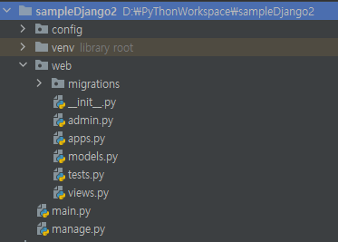 위 명령으로 프로젝트에 포함되는 app을 생성한다.
