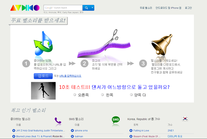 Link 무료 벨소리 다운로드 _투덜이스머프 2013. 7. 17. 17:39 반응형 http://kr.audiko.net/ 국내 최신 음악 및 외국 음악의 벨소리를 다운 받을수 있다~ 그것도 무료로 +_+ 반응형 저작자표시 비영리 (새창열림)